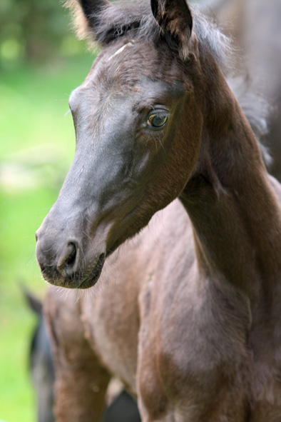 VERKAUFT nach Oberbayern: Da hat alles gepasst – Tamée v. Bon Coeur aus einer Swarovski x Caprimond Mutter. Absolut korrektes Fohlen, was Interieur und Exterieur angeht. Ins Auge fallen die elastischen und lockeren Bewegung bei viel Schwung! Sehr typvoll durch den Mutterstamm geprägt, vereint bewährtes deutsches Spitzenblut – Schwarze Schönheit!